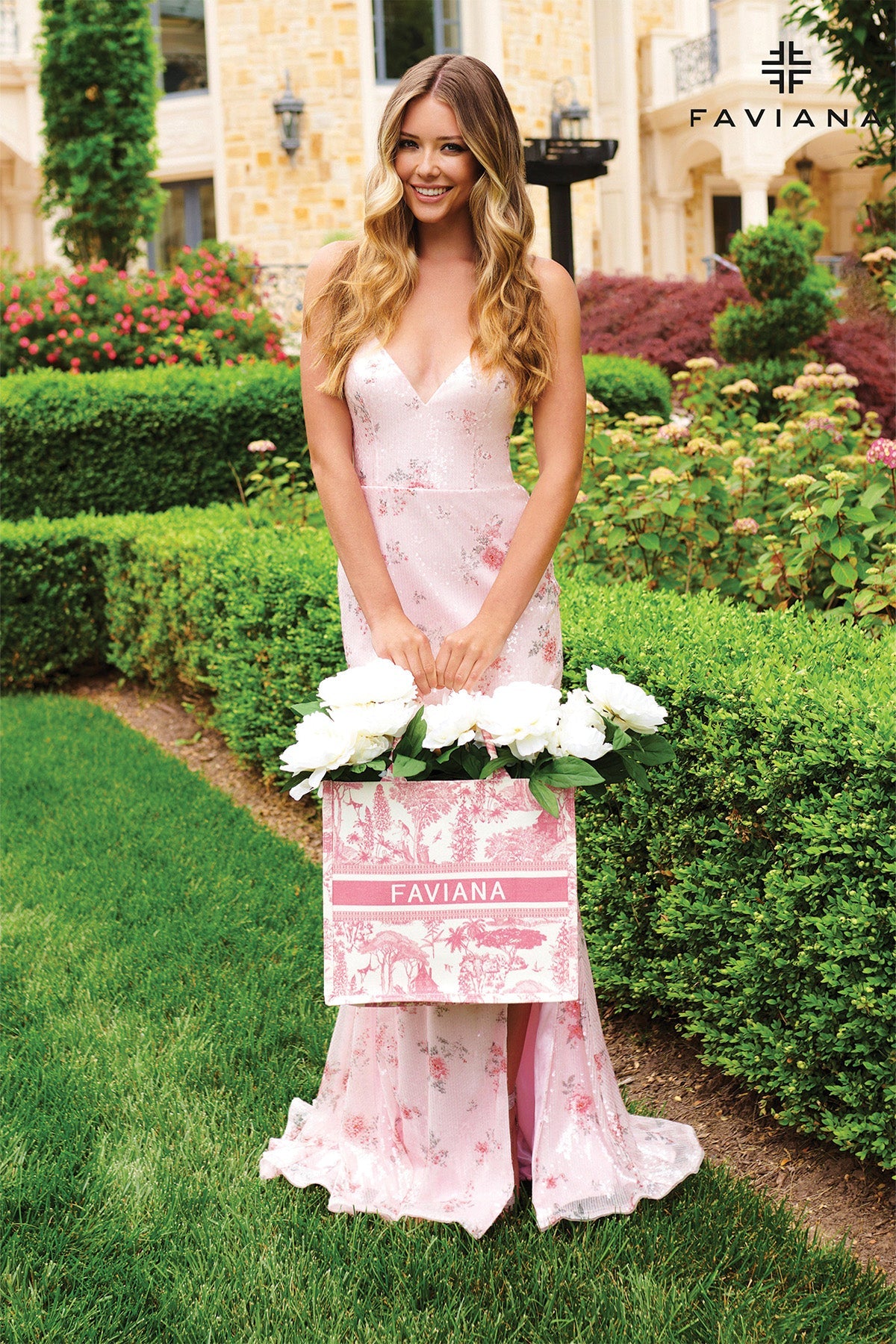 Vintage Floral Sequin V-Neck Long Dress With Lace-Up Back
