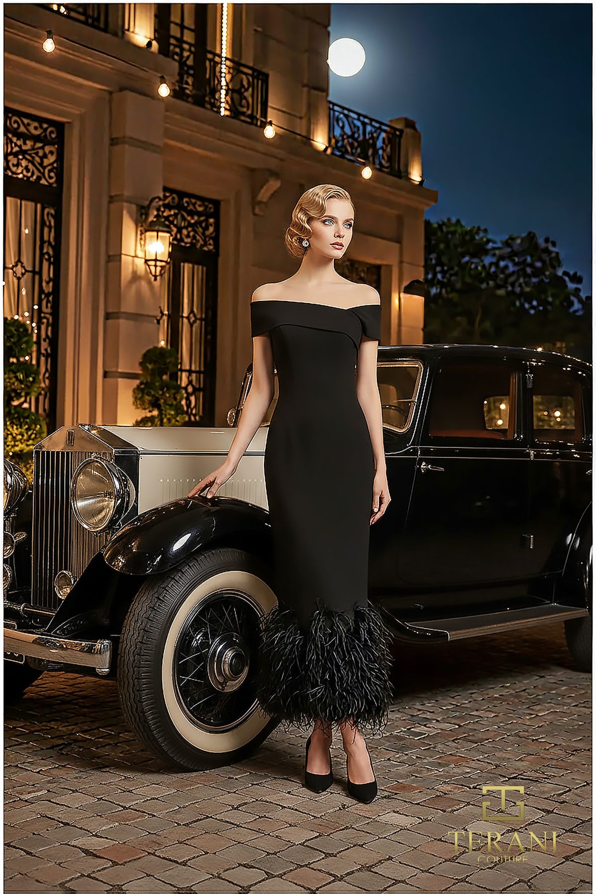 Name: Off-Shoulder Scuba Sheath Gown - 252C5033
